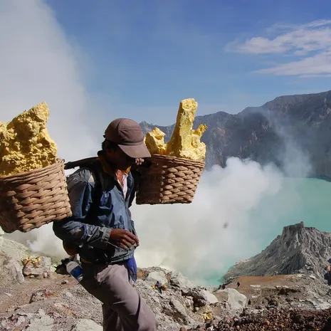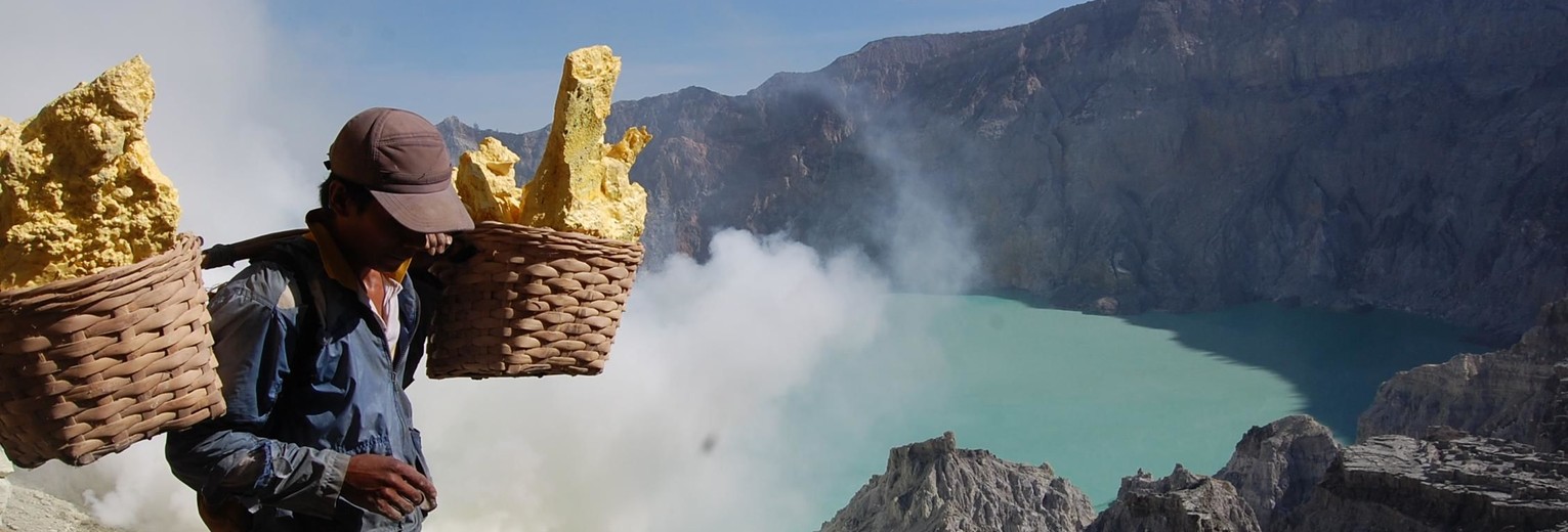 Tijdens de klim omhoog, komt u verschillende mijnwerkers tegen die met grote manden vol met zwavelbrokken weer naar beneden lopen. De manden wegen rond de 50 kilo, wat ongeveer hun eigen lichaamsgewicht is wat ze op hun schouders dragen. Erg indrukwekkend om te zien!