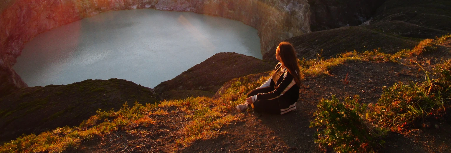 Vroeg op voor de zonsopgang bij de Kelimutuvulkaan. Het is een makkelijke wandeling door bos en er is een hoge trap. Bij aankomst zag ik één van prachtige blauwe kratermeren. In totaal bestaat de Kelimutu vulkaan uit drie meren, welke van kleur kunnen veranderen.