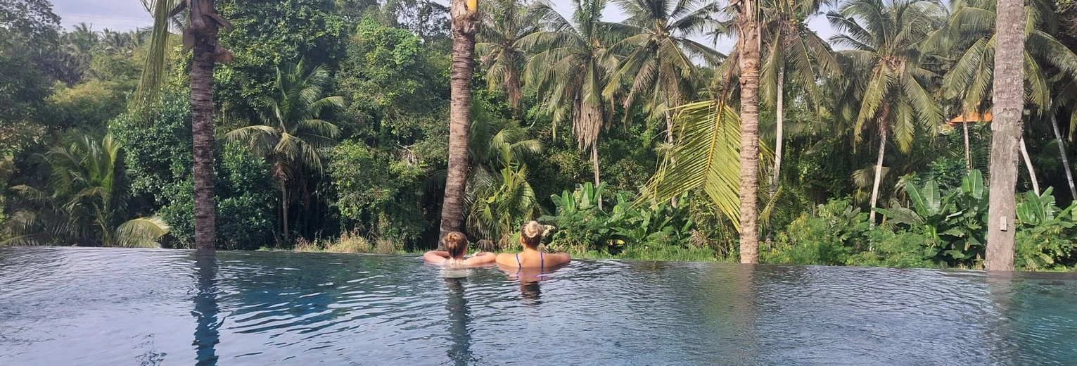 Nog maar net in Sumatra aangekomen had het gezin een fantastische ervaring. “In Bukit Lawang maakten we in het Gunung Leuser National Park een jungletocht. We kozen voor de eenvoudigere ecotrail van drie uur. En hoewel er hier orang-oetans in het wild leven, hadden we niet verwacht ze tijdens deze korte jungletocht te zien. Maar we zagen ze gelijk in het eerste uur al en het was magisch! Na de bijzondere wandeling door de jungle gingen we tuben: op een band de rivier af onder begeleiding. Langs de rivier zagen we dorpelingen bezig met hun dagelijkse bezigheden en iedereen zwaaide, een leuke ervaring. Ook de door Jasmijn gekozen workshop om sieraden te maken op Bali pakte heel goed uit. We hebben dat ter plekke via het hotel geregeld en kwamen echt tussen de locals in een afgelegen dorpje terecht. Sumatra sprong er voor ons wel echt uit, maar ook op Bali vonden we verrassende authentieke plekken.”