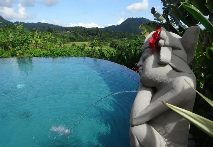 Een mooie en kleinschalige accommodatie, op korte afstand van het centrum van Ubud. En: het ligt aan de rand van een groene vallei. De kamers zijn groot, vooral de suites vind je heel mooi. Een echte eye-catcher: het zwembad: aan de rand van de vallei!
