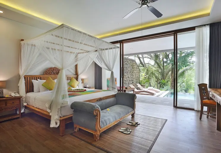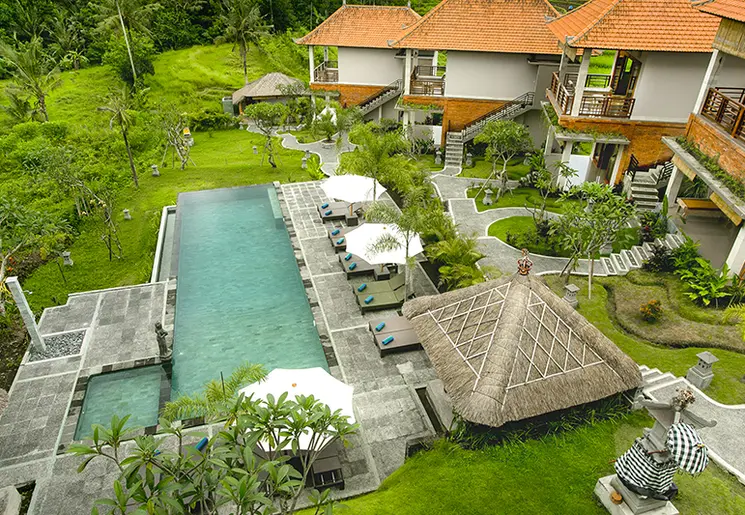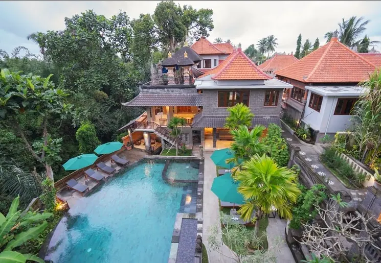 Een mooie en kleinschalige accommodatie, op korte afstand van het centrum van Ubud. En: het ligt aan de rand van een groene vallei. De kamers zijn groot, vooral de suites vind je heel mooi. Een echte eye-catcher: het zwembad: aan de rand van de vallei!