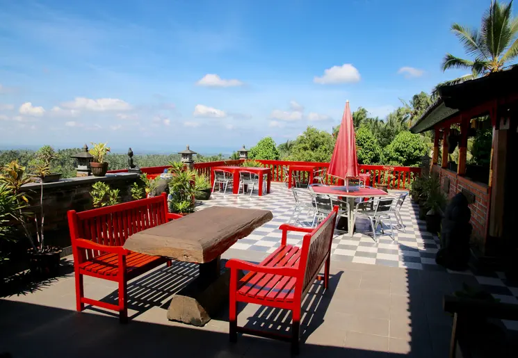 Vanuit Blimbing rijd je naar de noordkust, door het groen, langs rijstvelden- en terrassen. Vraag je chauffeur te stoppen in het dorpje Sanda. Vanaf het terras van het hotelletje Sanda Bukit Villa’s heb je panoramisch uitzicht. Wat hebben wij hier lekker geluncht! Nog geen trek? Alleen een drankje kan natuurlijk ook. Vervolg je weg noordwaarts, via het uitzichtpunt in Mayong met weer van die weidse uitzichten. Je blijft foto’s nemen. Weer de auto in, en dan glinstert eindelijk de zee in de verte. Het laatste stuk naar Pemuteran rijd je langs de kust met af en toe een glimp van de zee aan je rechterhand. In totaal ben je zo’n 4 uur onderweg.