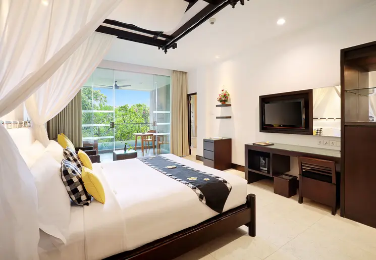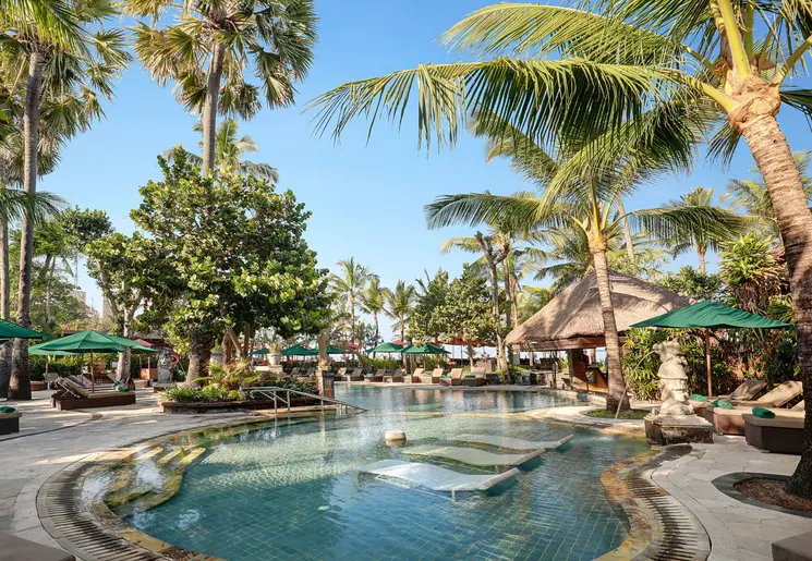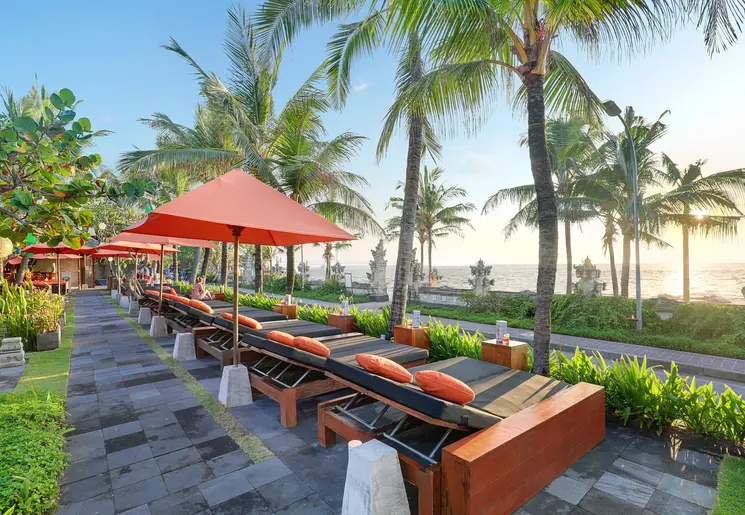 Prachtige traditionele bungalows met rieten daken en een moderne inrichting. Gelegen in een weelderige tropische tuin. De bungalows hebben allemaal een privé-terras. Hotel Legian Beach is een goed familiehotel, slechts door een wandelpad van het witte zandstrand gescheiden.