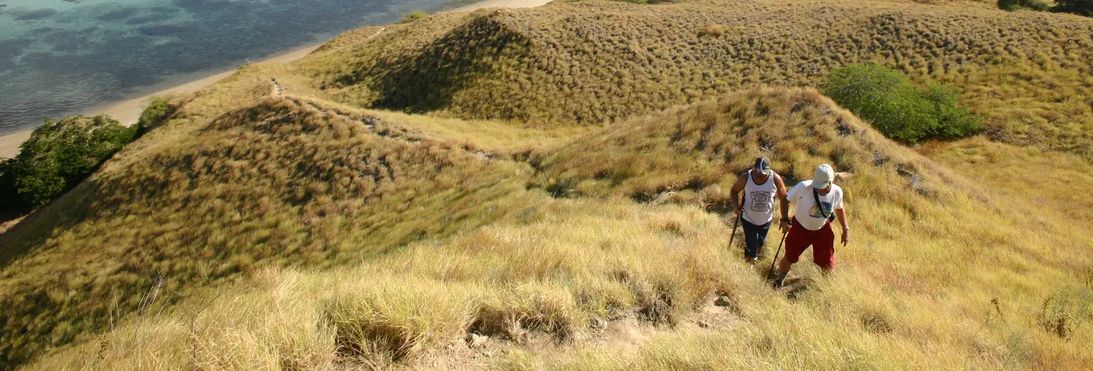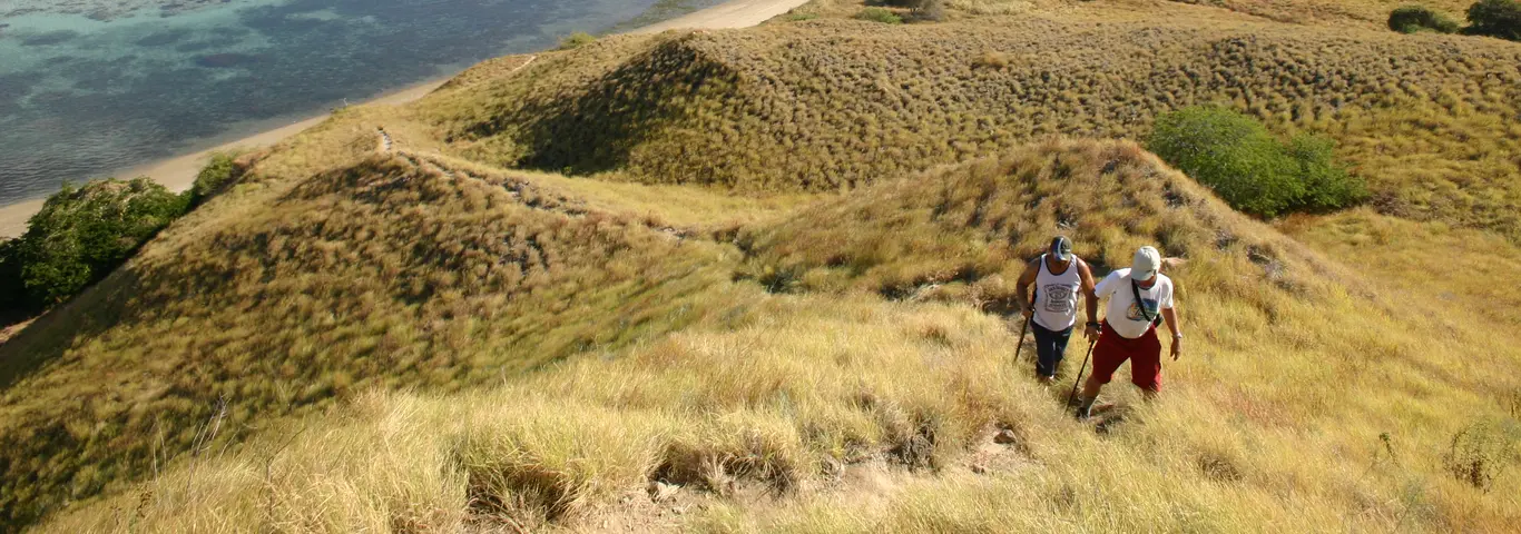 Samen met de ranger ga je nogmaals op zoek naar komodovaranen. Op dit eiland verzamelen ze zich vaak rond een waterpoel, wat het zoeken makkelijker maakt. Naast buffels, herten en zwijnen leven er op dit groene eiland ook veel vogels, waaronder kaketoes.