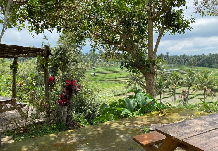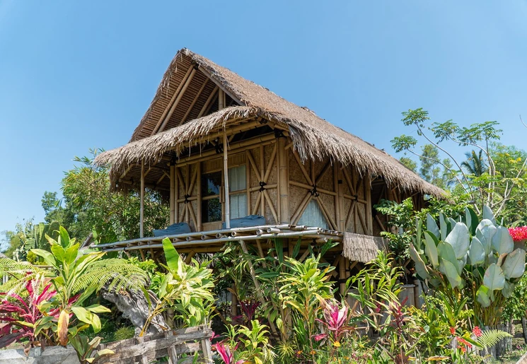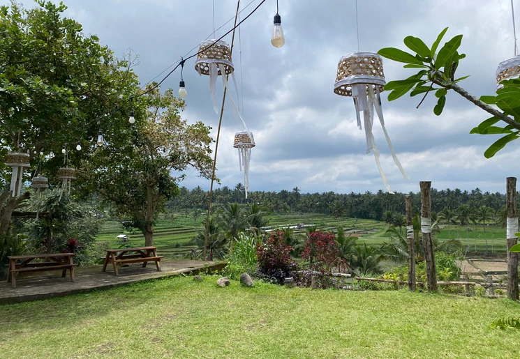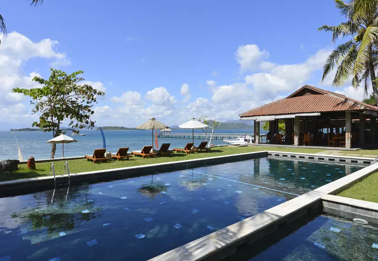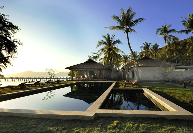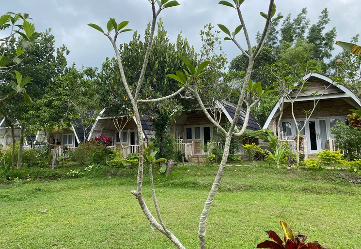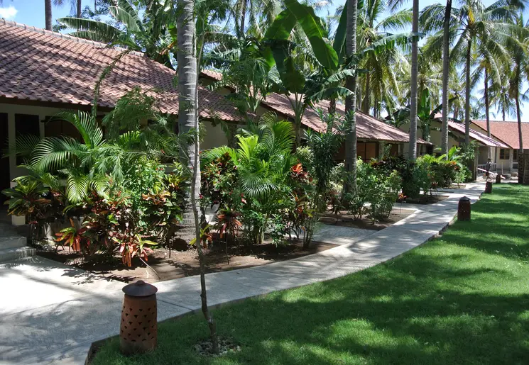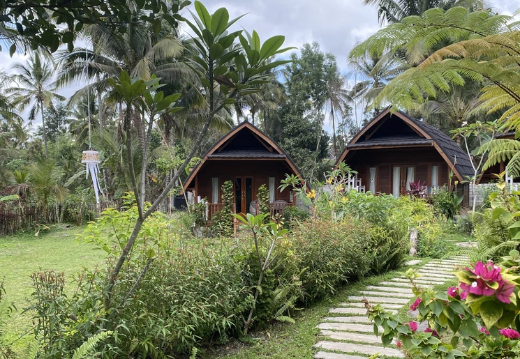 Aan de zuidkant van de vulkaan Rinjani ligt het kleinschalige hotel met bungalows te midden van de rijstvelden.