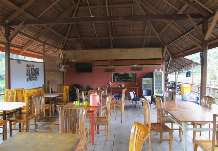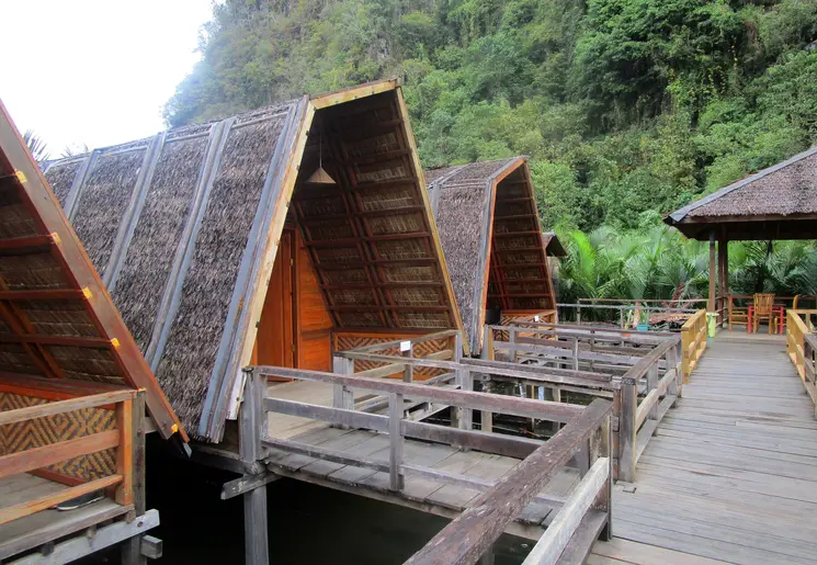 Dit kleinschalige bergresort ligt prachtig in het groen, tegen de berghelling aangebouwd. De huisjes, het hotel noemt ze bungalows, zijn in de lokale Minahasastijl gebouwd.