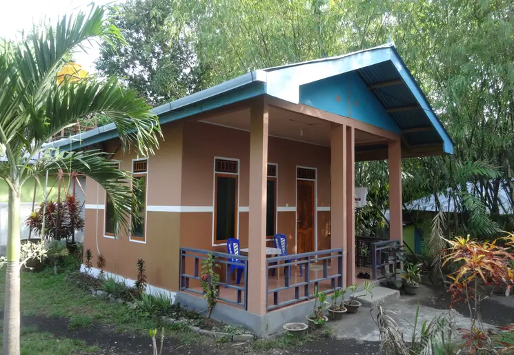 Heel eenvoudige accommodatie. Je ervaart het logeren bij de mensen thuis. Deze homestay vormt het beste uitgangspunt voor het maken van een excursie naar het Bogani Nani Wartabone National Park.