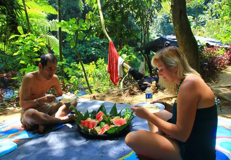 Een avontuurlijke trekking door de jungle, over smalle paadjes en langs slootjes op zoek naar wildlife. Soms klimmend en klauterend en dan weer balancerend over boomstammen om een rivier over te steken. In dit gebied leven onder andere zwarte gibbons en wie weet heb je het geluk ze onderweg tegen te komen. Je maakt een stop bij een verborgen waterval om even op adem te komen. De trekking duurt de hele dag.