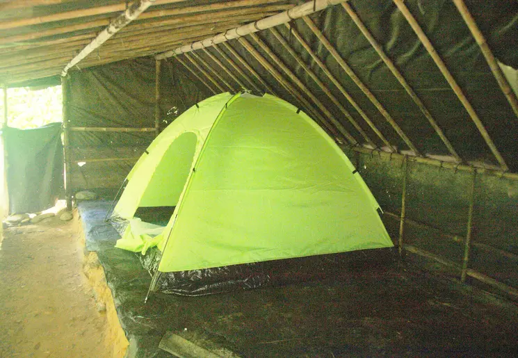 U gaat als echte avonturier overnachten in een grote, geïmproviseerde tent in de jungle. Veel stelt de tent niet voor, het is echt back to basic, wat helemaal past zo midden in de jungle!