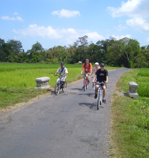 Je maakt een gemakkelijke wandeling door de weelderige natuur, over de smalle paadjes, dwars door de rijstvelden. Onderweg zie je veel vlinders. Witte reigers houden de wacht tussen de rijstvelden. Terwijl je de boeren aan het werk ziet op de sawa’s geeft de gids je uitleg over het beplanten en oogsten. De wandeling duurt ongeveer 3 uur.