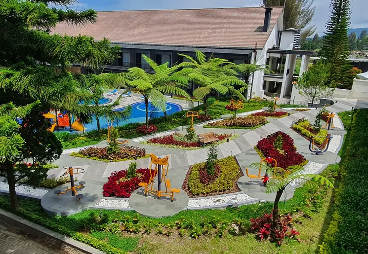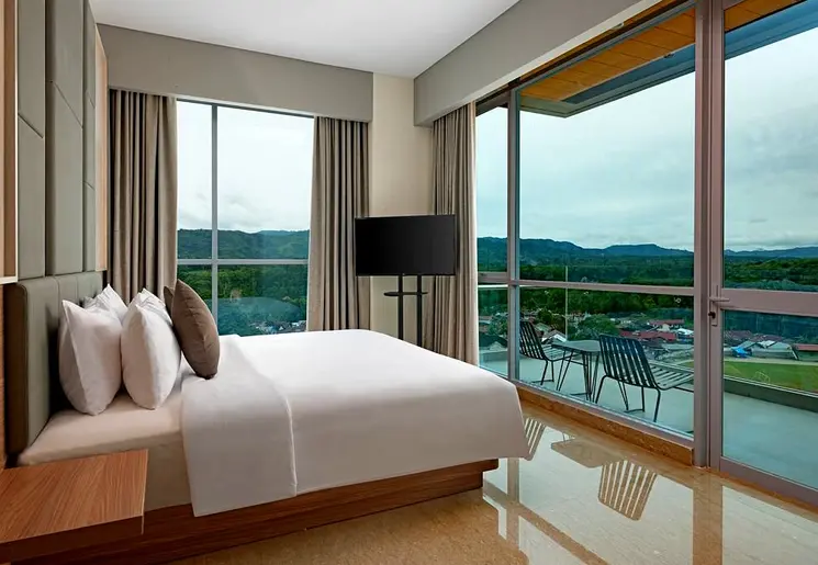 Vanuit het hotel zul je genieten van de panoramische uitzichten op het stadje en de bergachtige omgeving, vooral vanuit het restaurant op het dak! Je loopt in zo’n 10 minuten naar downtown Bukittinggi, waar je kunt kiezen uit meerdere leuke restaurantjes. Het Santika Hotel is een modern gebouw met mooie kamers.