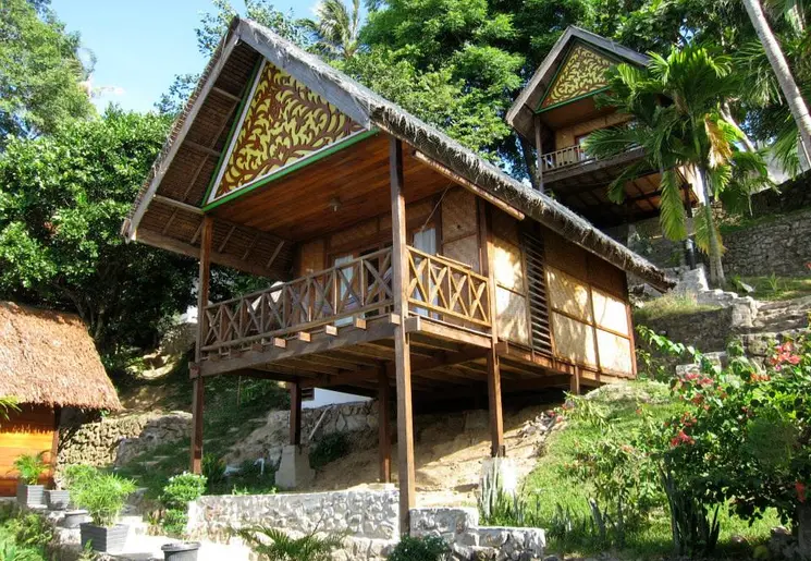 Leuke accommodatie met allemaal huisjes in lokale stijl die als het ware tegen de berg aangeplakt zijn. De trappen af en je komt op het strand en bij de blauwe zee. Een heerlijk klein strandje voor de deur.