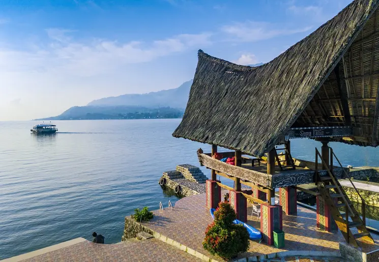 Je vaart per ferry over naar het eiland Samosir in het mooie vulkanische Tobameer. Je chauffeur blijft bij je op het eiland.