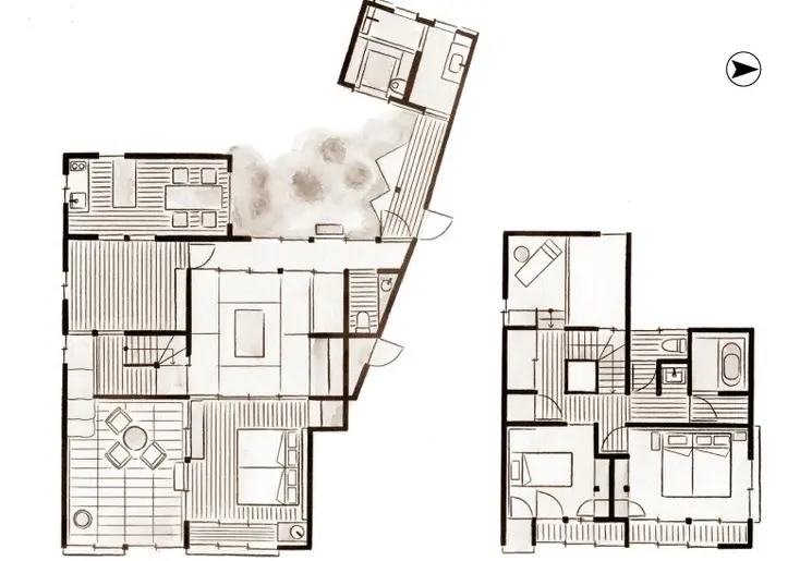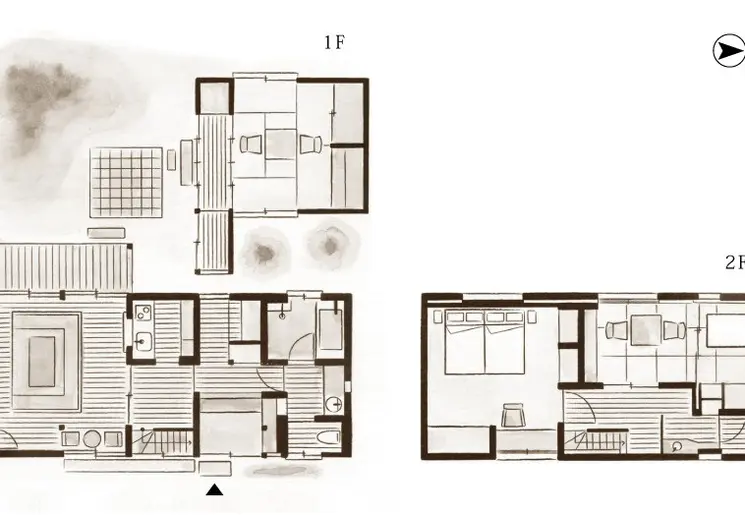 Uchiko no Yada bestaat uit 4 verschillende authentieke gebouwen verspreid over het centrum van Uchiko. Alle 4 de gebouwen liggen dicht bij Yokaichi Old Town.