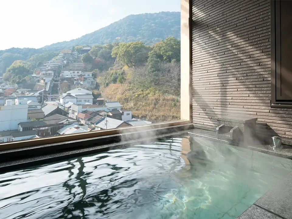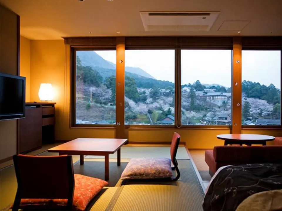 Aan de voet van een berg ligt het dorp Kotohira met het Grand Hotel Sakuranosho. Het treinstation ligt slechts op een minuut of 5 rijden. Er zijn restaurantjes op loopafstand.