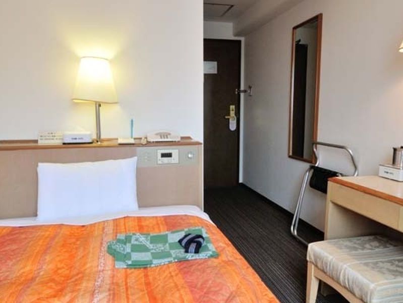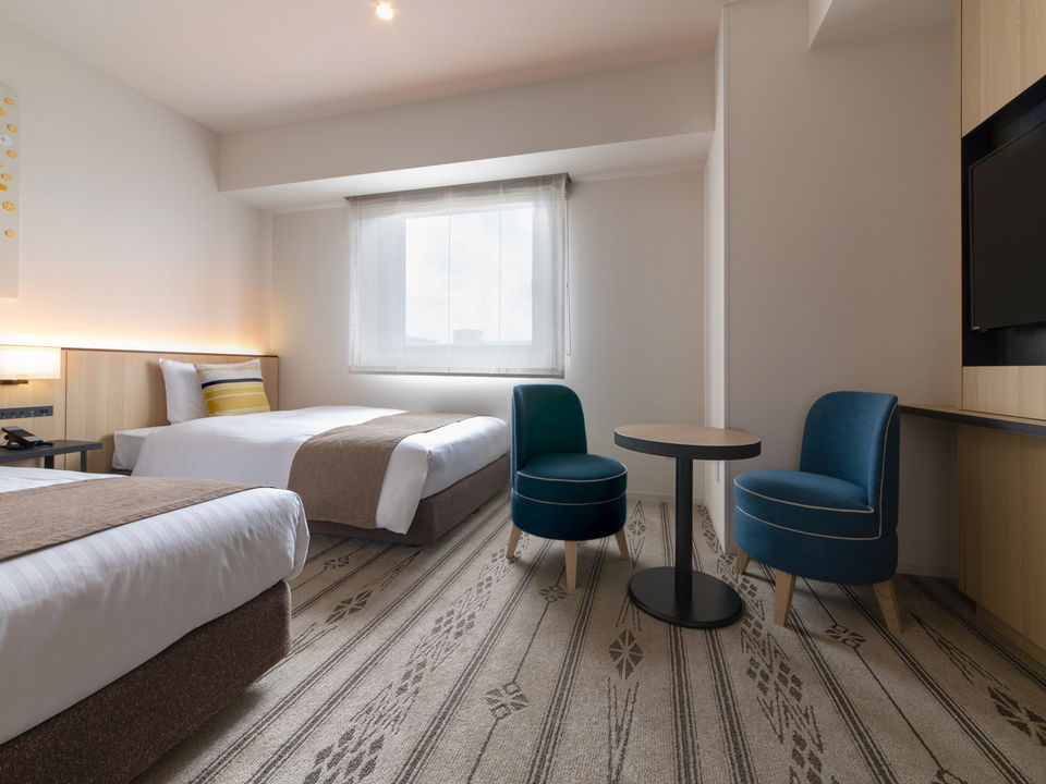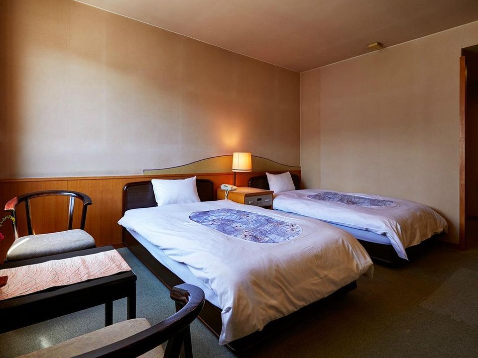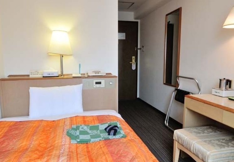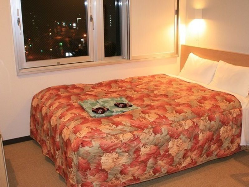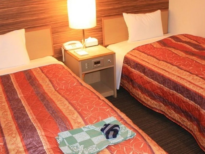 Groot en hoogbouw hotel met bedden in westerse stijl op een gunstige locatie in Kagoshima.