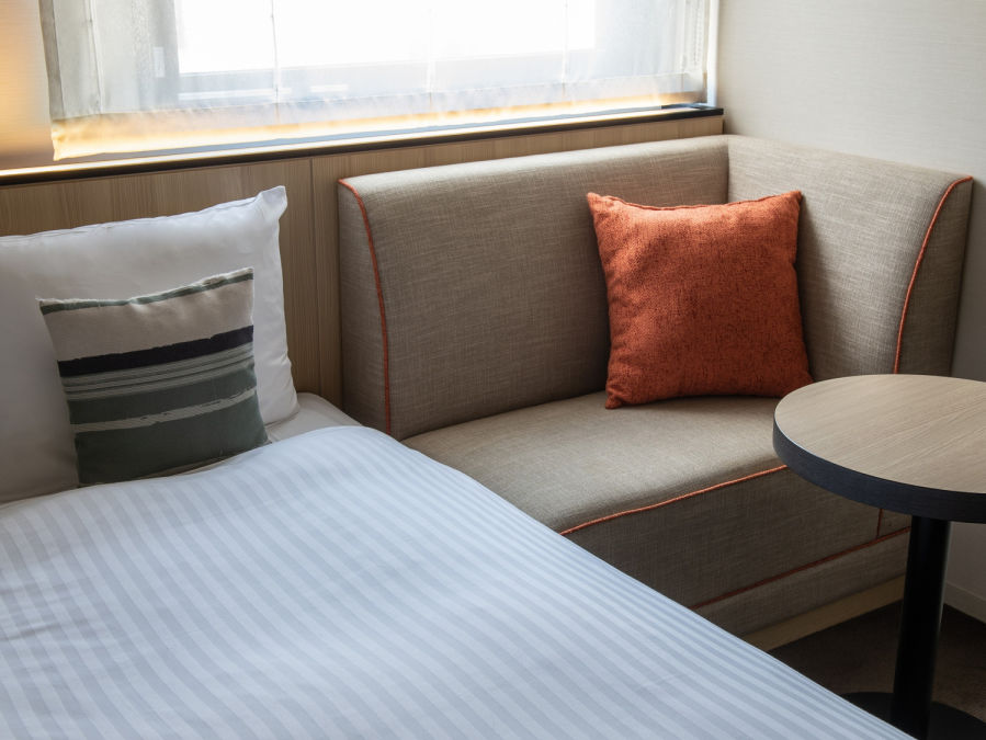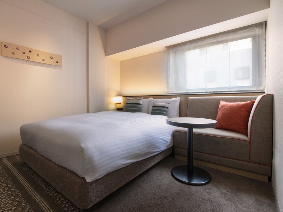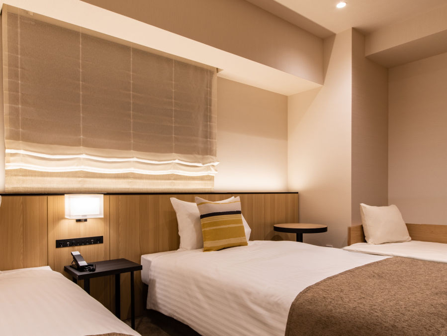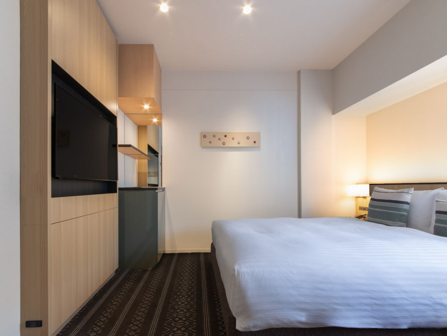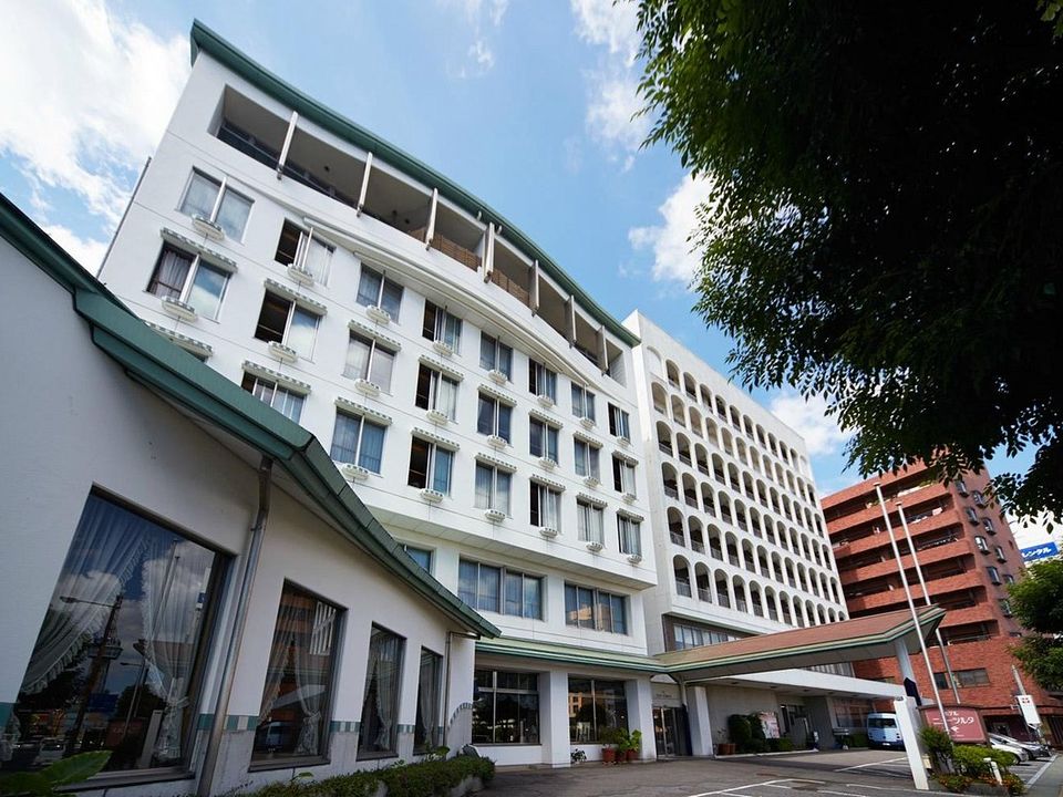 Groot en hoogbouw hotel met bedden in westerse stijl op een gunstige locatie in Kagoshima.