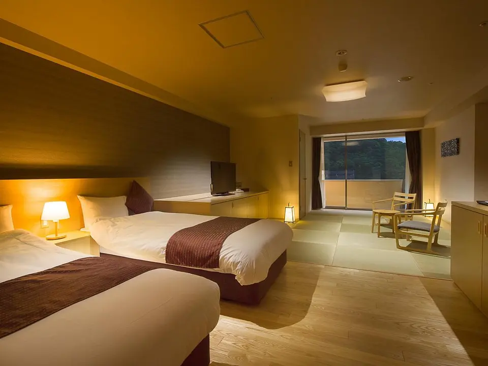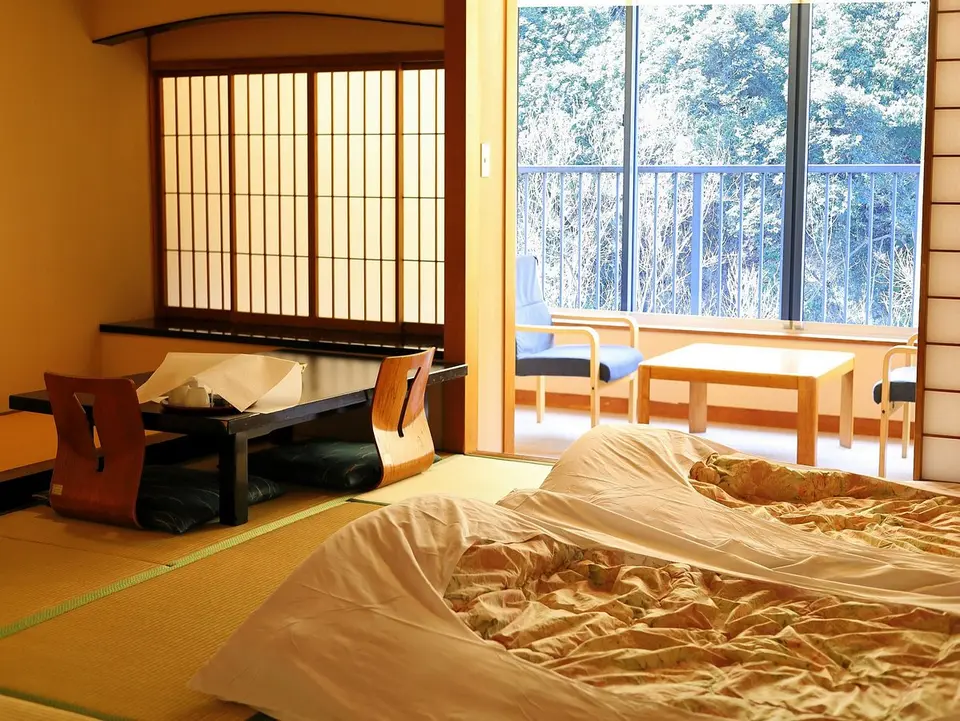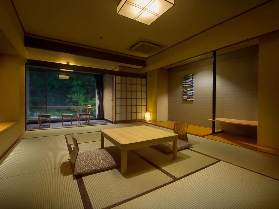 Alle kamers zijn in Japanse stijl. Elke kamer heeft een eigen badkamer met toilet en bad of douche en föhn. Er is airconditioning, een koelkast, kluisje, waterkoker en verwarming.