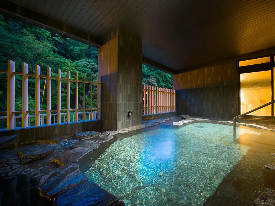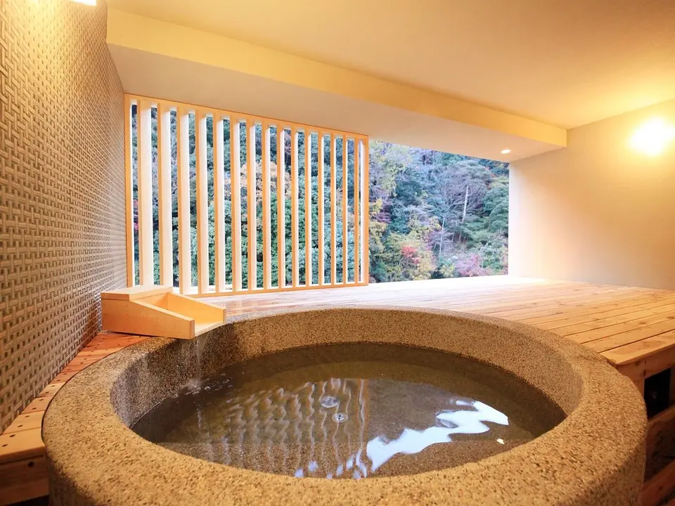 In de kamer staat een lage tafel met zaisu (stoelen zonder poten), er zijn shoji (schuifdeuren) en er liggen tatami matten op de grond. In de kamers hangen kimono’s. Trek deze ’s avonds aan. Begeef je naar de eetruimte, waar je een typisch kaiseki diner krijgt dat uit meerdere gangen bestaat.