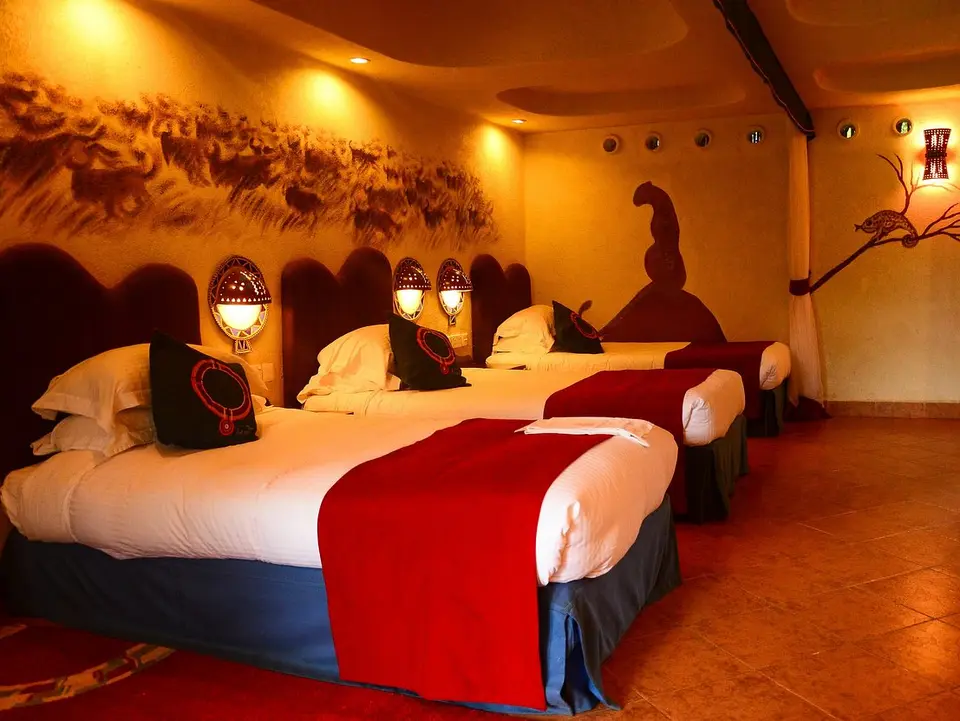 In totaal zijn er 92 kamers. Het ontwerp van het hotel is gebaseerd op de Masai-cultuur. In alle kamers vind je een plafondventilator, de faciliteiten om koffie en thee te zetten, een bureau en er is een balkon.
