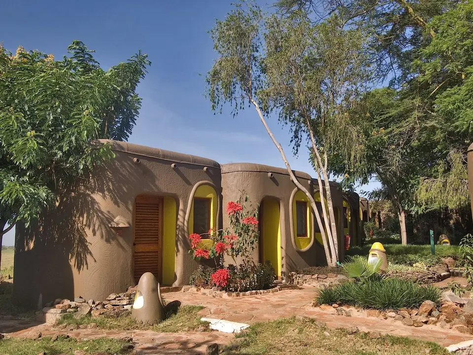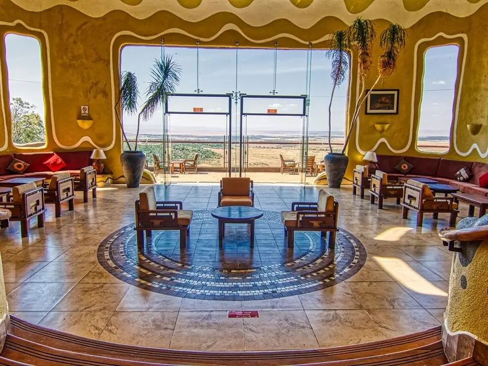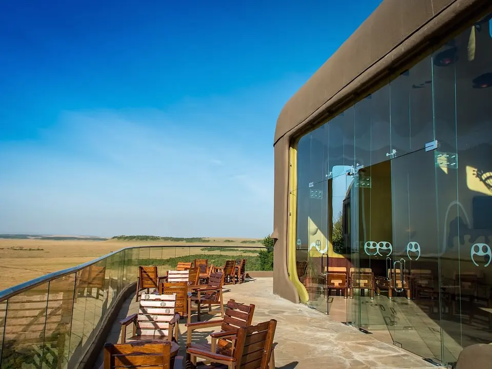 De lodge oogt heel Afrikaans, omdat de architectuur is gebaseerd op een typisch Masai-dorp. De muur rond de lodge vormt een cirkel, alsof het de takkenbossen ter bescherming tegen wilde dieren in een Masai-dorp is. Er zijn 2 rijen met kamers. Vanuit sommige kamers heb je zelfs uitzicht op de Mara-rivier; nu nog de gnoes en zebra’s die in grote getalen het water oversteken!