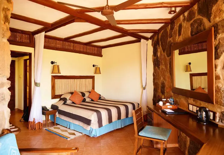 Kilaguni Serena Safari Lodge in Tsavo West National Park is een rustig en koel toevluchtsoord omgeven door de imposante Kilimanjaro en de glooiende, vulkanische landschappen van de diepgroene Chyulu Hills. Eyecatcher is de waterpoel bij de accommodatie waar onder andere olifanten en buffels graag komen drinken.