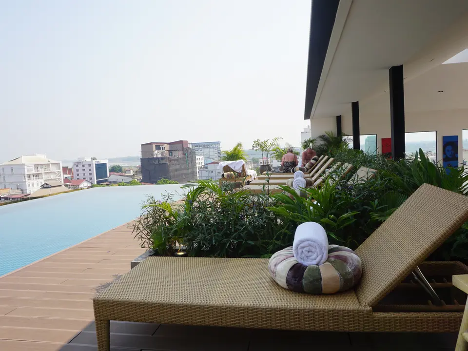 Een bijzonder sfeervol modern hotel, met een junglestijl. Oftewel veel planten en (wand)decoraties die een ‘outdoor’ gevoel geven. Elke kamer heeft een ander soort behang achter het bed waardoor het een verrassing is hoe je kamer eruit ziet. Het hotel ligt vlakbij de touristarea, dus restaurantjes, de Mekongrivier en de nachtmarkt zijn dichtbij. Het dakterras met zwembad is uitstekend geschikt om te ontsnappen uit alle hectiek van de stad.