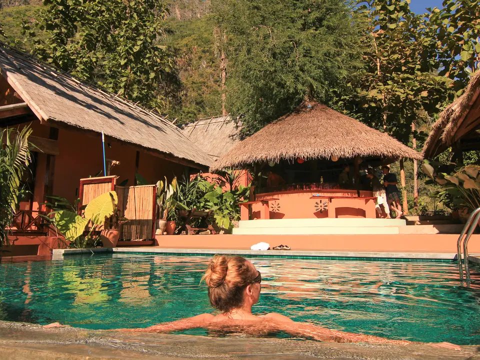 Zeer rustig (hoog) gelegen aan de rand van het plaatsje. écht een plek om heerlijk bij te komen. Het uitzicht op het Karstgebergte en de Nam Ou rivier is adembenemend. In 15 minuten loop je naar het centrum van Nong Khiow. In de omgeving kun je verschillende activiteiten ondernemen; kajakken, mountainbiken, tuben, wandelen etc.