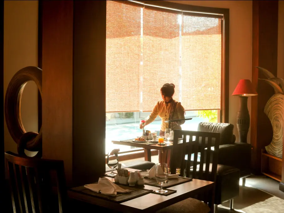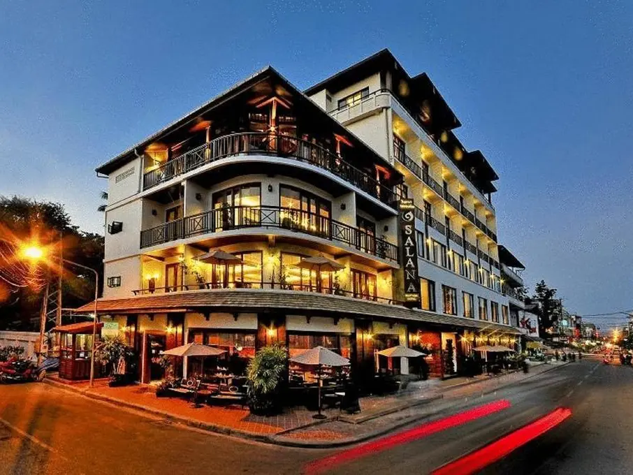Het zeer centraal gelegen (echt downtown) Salana is een boutiquehotel in koloniale stijl met veel charme. Bijzonder: schuin aan de overkant ligt een tempel, vanaf sommige kamers heb je uitzicht hier op. Vanaf de bar op de vierde verdieping heb je sowieso mooi uitzicht over de bedrijvige straat, maar het was leuker op één van de zitjes van het restaurant op de begane grond mensen te kijken. Het restaurant heeft ook enkele zitjes buiten aan de straat. Dit hotel in deze categorie is een aanrader.