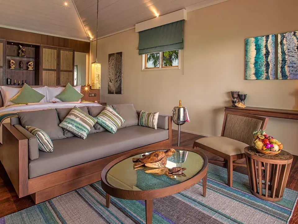 Het resort biedt verschillende kamers op het strand of op het water die zijn ondergebracht in huisjes. De kamers hebben een moderne inrichting en een luxe uitstraling. Je ziet de tropische en kleurrijke tinten terug in de inrichting. Kom helemaal tot rust bij een overnachting in een van deze kamers.