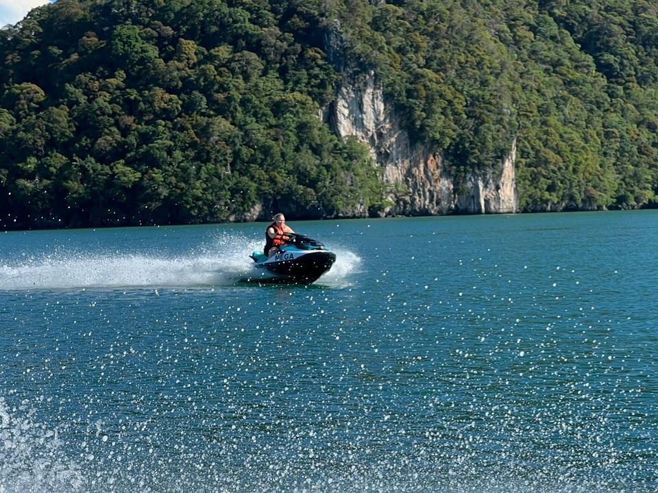 Een absolute belevenis. Vier uur op pad met een waterscooter.  Je start op het strand en krijgt uitleg hoe je de waterscooter bestuurd.  In het begin is het onwennig maar dat went snel. Wij kregen letterlijk kippenvel van de blik op zee en de eilanden om ons heen. De meest bekende plek die je bezoekt is het eiland van de Dayanggors, het op één na grootste eiland van de L...