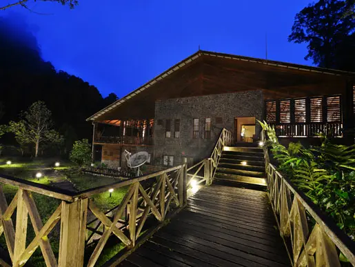 Een rustieke lodge, gelegen aan de Danum-rivier. Het is bewust kleinschalig gehouden (er zijn 32 kamers) om elke gast een unieke en persoonlijke jungle-ervaring aan te bieden. Het is een lodge, zoals die hoort te zijn, zo midden in het oerwoud. Vanaf je balkon kijk je zo het tropisch regenwoud in, geweldig! Geniet van de vogels en vlinders die voorbij fladderen. Vanuit de lodge kun je direct kennis maken met de enorme diversiteit en complexiteit van het regenwoud. Bijna alle planten die op Sabah voorkomen, groeien hier. Men helpt er bedreigde diersoorten zoals de orang-oetan, de zeldzame Sumatraanse neushoorn en de Aziatische olifant te overleven. Daarnaast leven er in het woud gibbons, dwergherten, baardzwijnen, vliegende eekhoorns en meer dan 270 soorten vogels. En je logeert hier middenin.