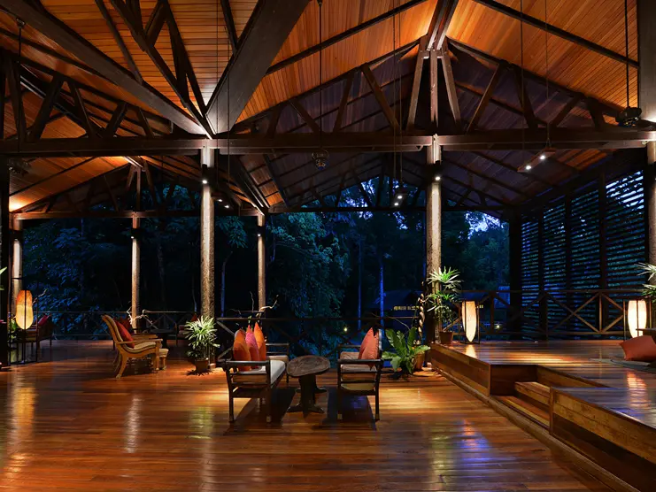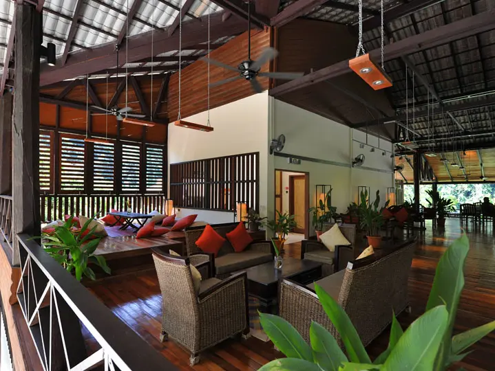 Het restaurant serveert gerechten uit de Aziatische en westerse keuken. De maaltijden zijn alle in buffetvorm en uitgebreid. U verblijft hier op basis van volpension, ook inclusief de excursies. De excursies zijn samen met andere gasten onder begeleiding van een gids. In de lobby zijn allerlei leuke zitjes. In de bar geniet u van een lekker drankje. Eventueel kunt u zwemmen in de rivier.