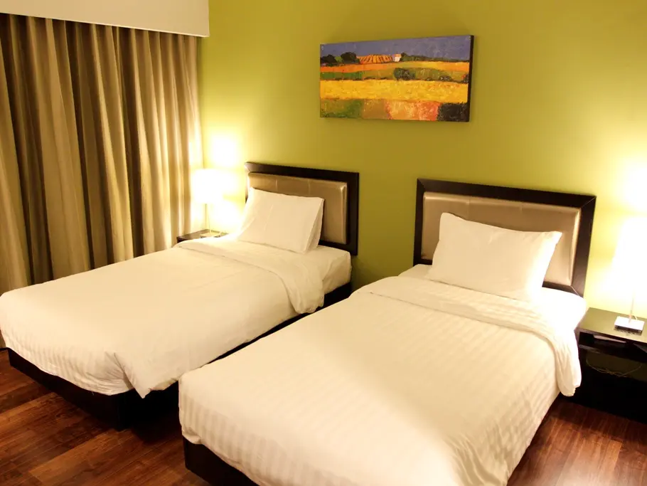 De 63 kamers van The Brunei Hotel zijn verdeeld over 4 verdiepingen. De kamers zijn alle comfortabel ingericht. Je beschikt alle over airconditioning, TV met DVD-speler, kluisje, minibar, koffie- en thee-faciliteiten en badkamer met douchecabine. Er zijn kamers met tweepersoonsbed of met twee éénpersoonsbedden. Voor families zijn er kamers met tussendeur.