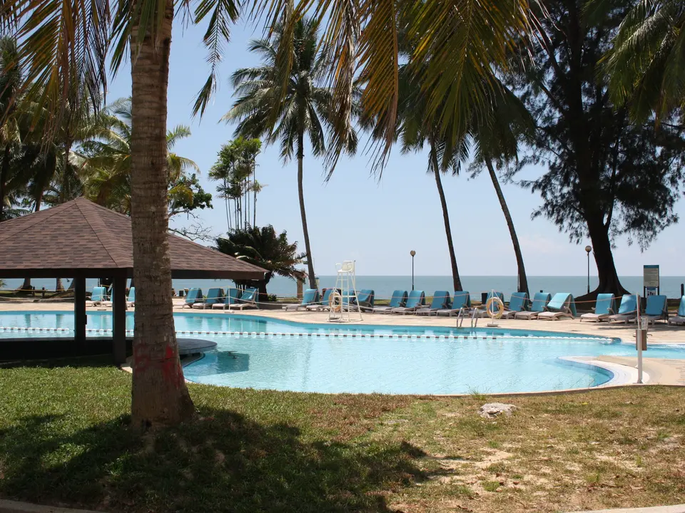 Gelegen aan een privé strand, naast het kleine centrum van Damai, met op de achtergrond de jungle en Mount Suntabong. Op 5 minuten rijafstand van de 18-holes golfbaan van Damai. Damai ligt op circa een half uur rijden vanaf Kuching.