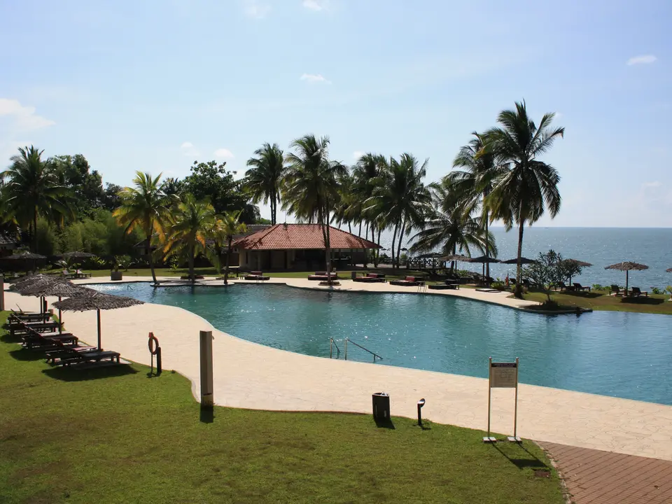 Gelegen aan een privé strand, naast het kleine centrum van Damai, met op de achtergrond de jungle en Mount Suntabong. Op 5 minuten rijafstand van de 18-holes golfbaan van Damai. Damai ligt op circa een half uur rijden vanaf Kuching.