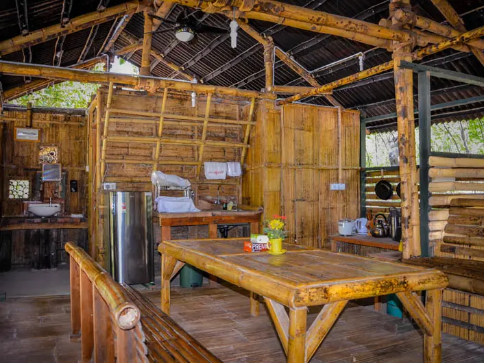 De eenvoudige bamboehutten zijn voorzien van een keukentje met keukengerei, een koelkast, kookplaat, eet- en zithoek. Er is 1 tweepersoonsbed of er zijn 2 éénpersoonsbedden aanwezig. De lodges bieden plaats aan 4 tot 6 personen.