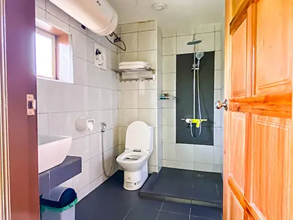 Je overnacht in een niet-verwarmde slaapzaal samen met andere reizigers. Het sanitair deel je ook met de andere reizigers (helaas is er geen warm water, maar met een fluitketel kan men wel water voor je opwarmen om je te wassen)