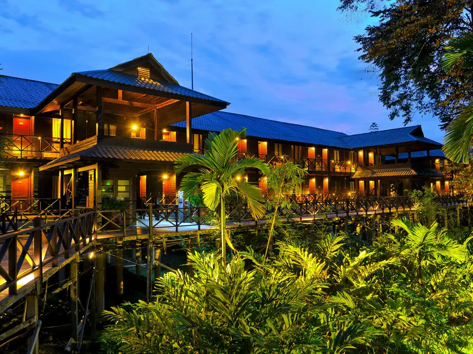 Het Mulu Marriott Resort heeft onlangs een uitgebreide renovatie ondergaan tot een luxe jungle-resort. Het resort is gebouwd op houten palen, in de stijl van inheemse longhouses, en gelegen middenin het weelderige oerwoud op de oevers van de Melinau-rivier. Verspreid door het resort vind je veel loungezitjes, waar je heerlijk kunt genieten van de jungle geluiden. Het geheel komt erg sfeervol en warm over.