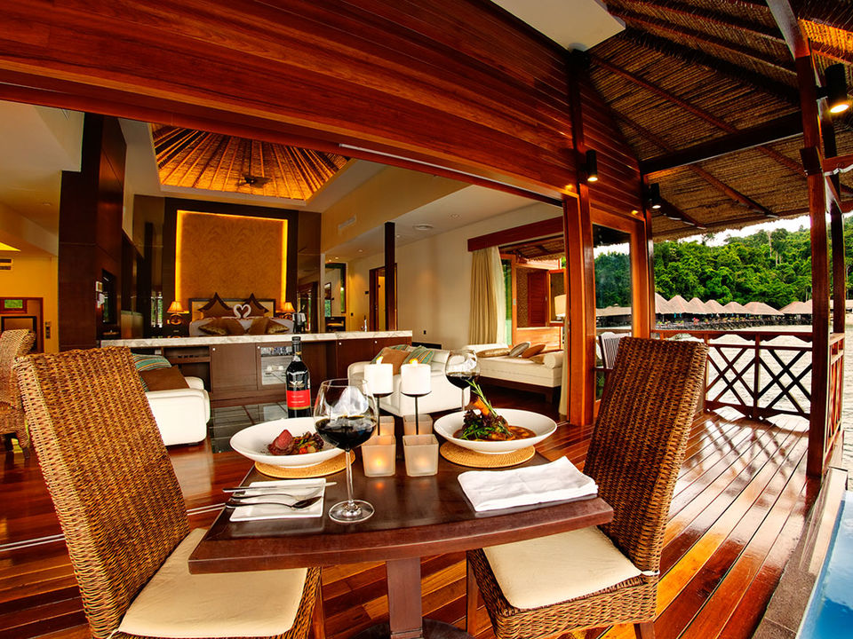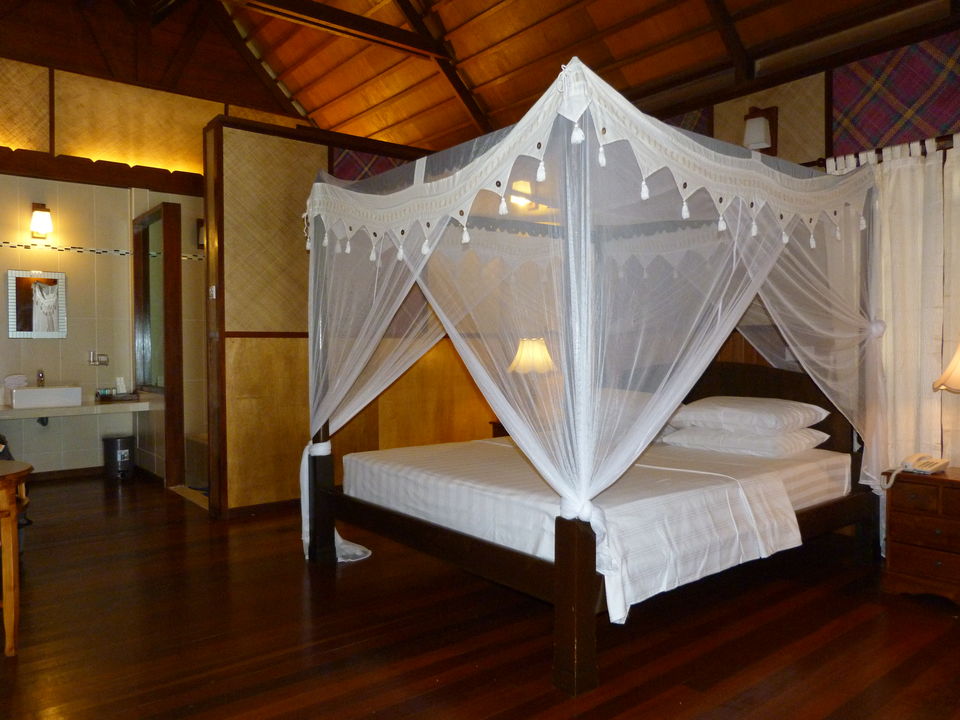 Vanaf je terras geniet je van de rust en het magnifieke uitzicht over de jungle of de zee. Het strand is wit, de zee blauw. De houten villaatjes steken mooi af tegen de groene jungle op het eiland. Pure luxe; heerlijk om je reis hier te beginnen of af te sluiten. Ook een aanrader voor honeymooners!