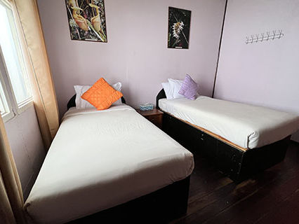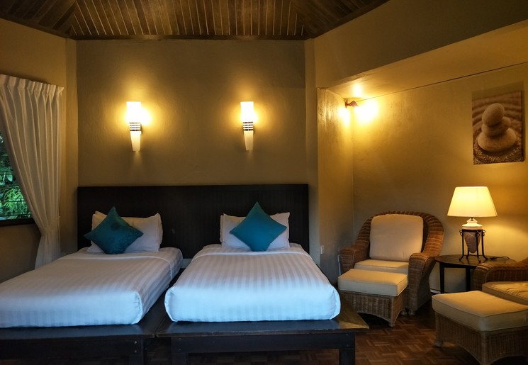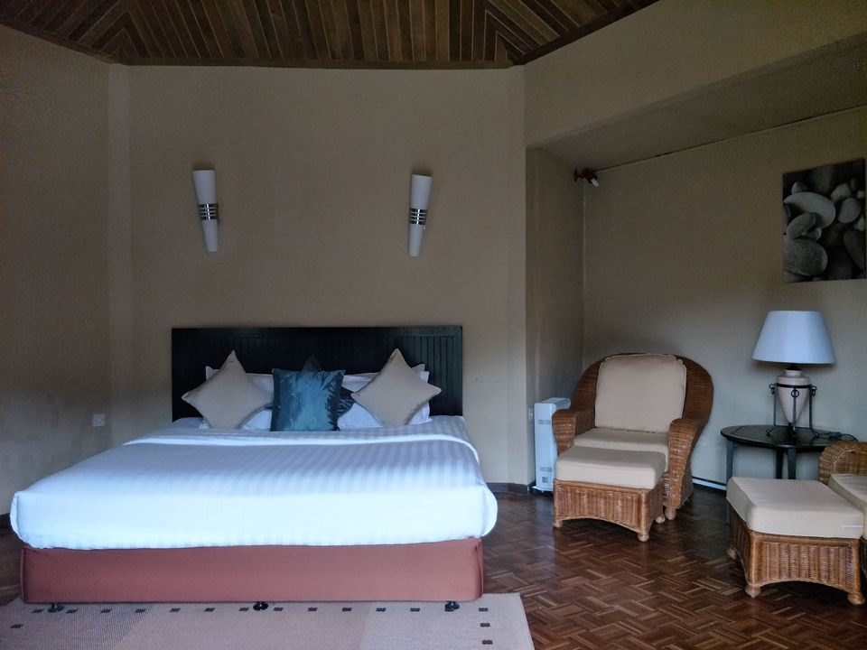 Leuke eenvoudige kamers in bungalowstijl in een mooie tuin. Tegen een heuvel gebouwd met (als het helder is) schitterend uitzicht op Mount Kinabalu.