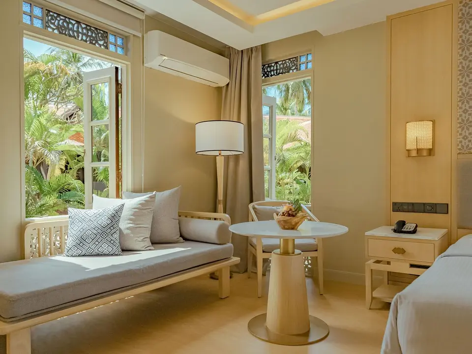 De 355 in Maleise stijl gebouwde chalets bestaan uit meerdere kamers. De chalets zijn maximaal één verdieping hoog. De ruime kamers zijn voorzien van airconditioning, ventilator, zithoek, koffie- en theefaciliteiten, kluisje, minibar, balkon en badkamer met douche, toilet en föhn. Afhankelijk van het type kamer hebben de kamers uitzicht op de tuin, één van de zwembaden, de vijver of zicht op zee. De Beachfront kamers zijn je favoriet vanwege de idyllische ligging direct aan het strand.