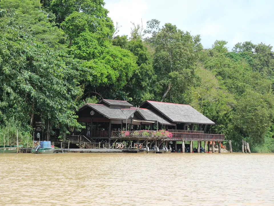 Het restaurant ligt aan, of beter gezegd, op palen boven de rivier. Heerlijk om hier te genieten van het uitzicht over de brede rivier. U zit aan lange tafels. Het eten dat men hier serveert is prima. De maaltijden zijn in buffetvorm. U verblijft hier op basis van volpension. Ook enkele excursies zijn inbegrepen.