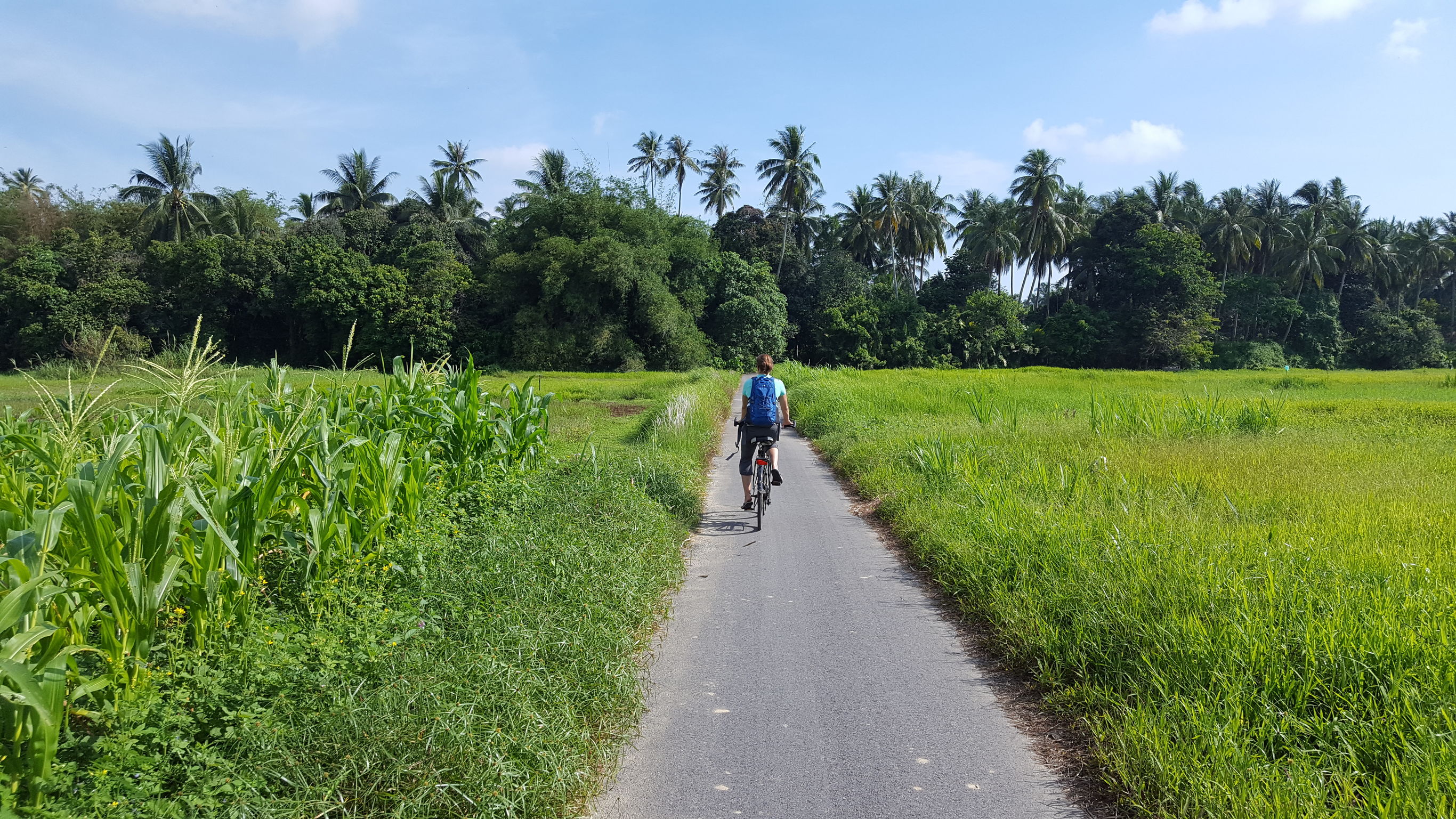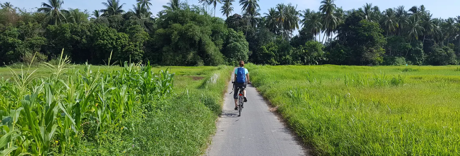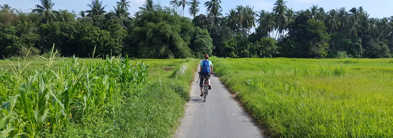 De leukste manier om een land echt te leren kennen is per fiets. Ik heb er dan ook al heel wat uurtjes gefietst tijdens mijn rondreis door Maleisië. Al trappend door de theevelden, plantages, fruitboomgaarden, landelijke dorpjes en langs haventjes waar kleurrijke vissersbootjes dobberen ervaar ik een land het meest intens. De warme zon op je huid, een iets verkoelend briesje, de geur van vis die ligt te drogen, en dan de mensen die je vaak vol verbazing aankijken. Vrolijk wordt je nageroepen: ‘Selamat Datang’, welkom in Maleisië! Ik zie ze denken ‘Wat die die lange blanke vrouw op dat te kleine fietsje?’ Met m’n knieën in mijn oor heb ik al veel fietstochtjes in Azië gemaakt. Van sportief mountainbiken tot rustig fietsen over landweggetjes, en van een meerdaagse fietstocht tot een ochtendje op de pedalen.