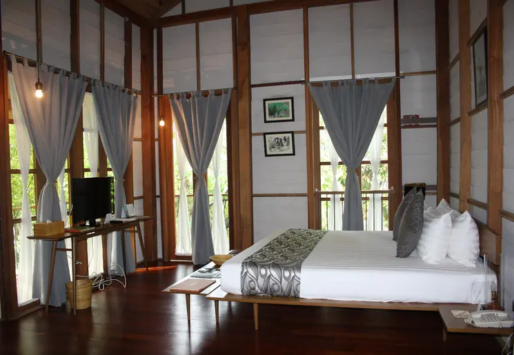 De comfortabele houten chalets met veranda liggen in een fruitboomgaard. Pasir Belanda vormt een uitstekende uitvalsbasis voor het verkennen van de omgeving. Slenter door het dorp en neem een kijkje bij de traditionele ambachten die hier nog veelvuldig beoefend worden zoals het maken van traditionele vliegers, batik schilderen en houtsnijden.