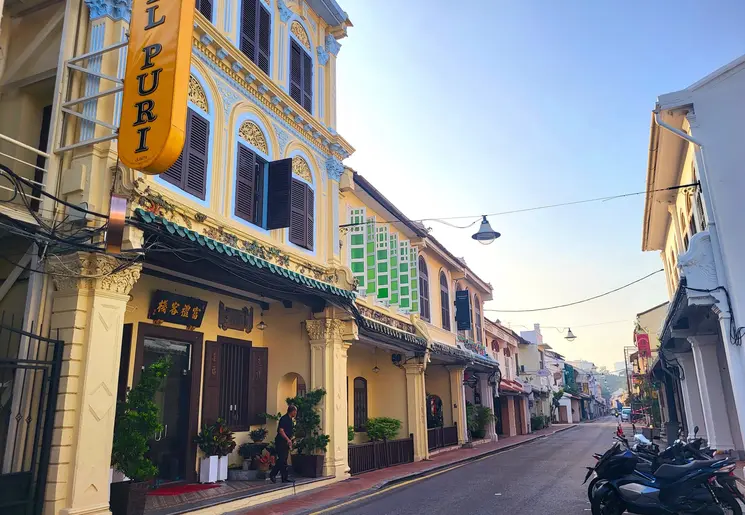 Je rijdt naar Penang. Stop onderweg bij een vlinder- en bijenfarm en geniet van prachtige uitzichten. Onze tip: bezoek de stad Ipoh. Deze stad is prachtig gelegen tussen de groen bedekte kalksteenrotsen. In een aantal van deze rotsen vind je mysterieuze Chinese grottempels. Volg in het centrum van Ipoh de ‘Heritage Walk’. Een leuke wandelroute door het oude gedeelte van de stad. Ontdek de prachtige muurschilderingen, het indrukwekkende treinstation en andere koloniale gebouwen. Stap weer in de auto voor het vervolg van je tocht naar Penang. Onderweg passeer je het paleis van de sultan en de prachtige moskee in Kuala Kangsar. Je rijdt over de kilometerslange brug van het vasteland naar het eiland Penang.