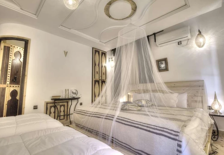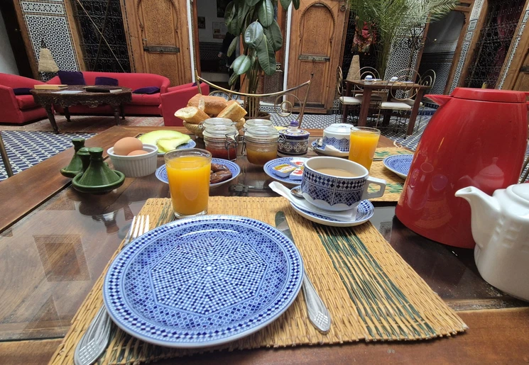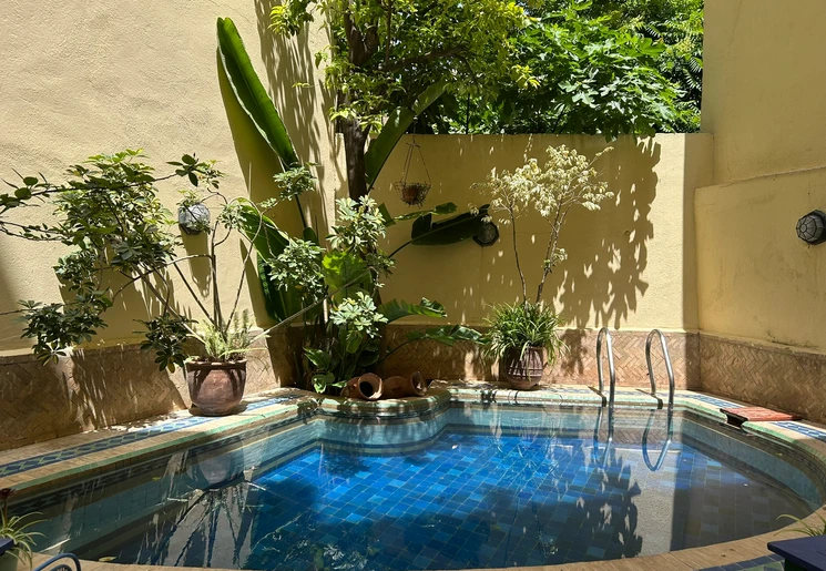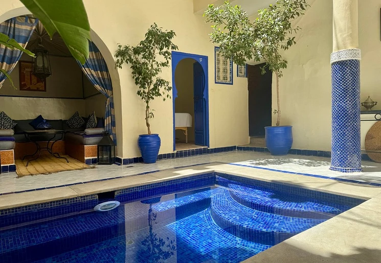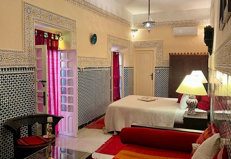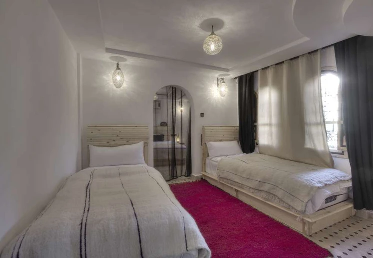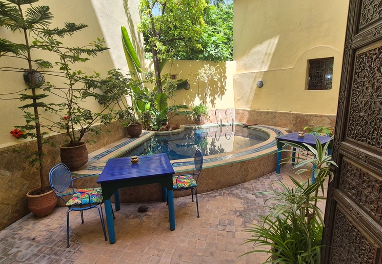Het 100 jaar oude huis dat ooit bewoond werd door rijke handelaren is omgetoverd tot een riad. Je geniet hier midden in de stad van de rust tussen de muren van de accommodatie. Er is een klein zwembad waar je kunt genieten van een frisse duik. ‘s Morgens vroeg wordt het ontbijt op het dakterras geserveerd.