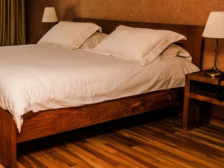 Amria Suite: tweepersoonskamer/driepersoonskamer (38 m2) met double bed en directe toegang tot het terras. Via een trap bereik je de etage hoger gelegen badkamer, welke voorzien is van een bad en aparte douche. Deze kamer is niet geschikt voor mensen die minder goed ter been zijn. In deze kamer kan een extra bed geplaatst worden, waardoor de kamer geschikt is voor 3 personen.