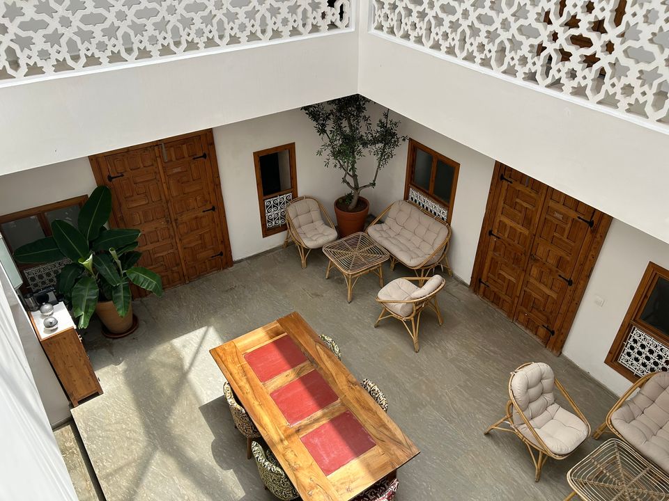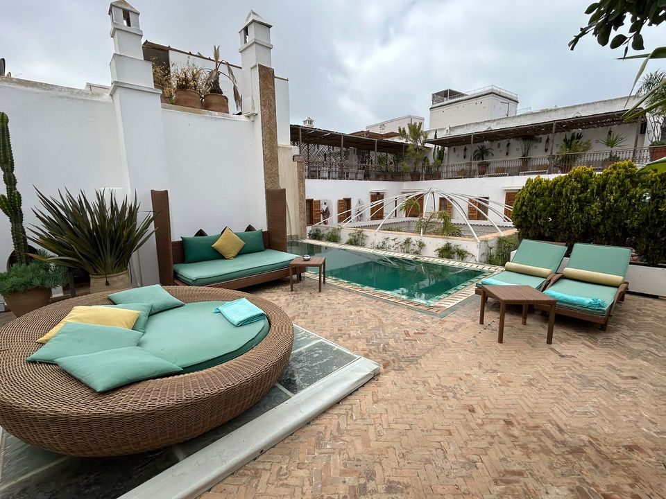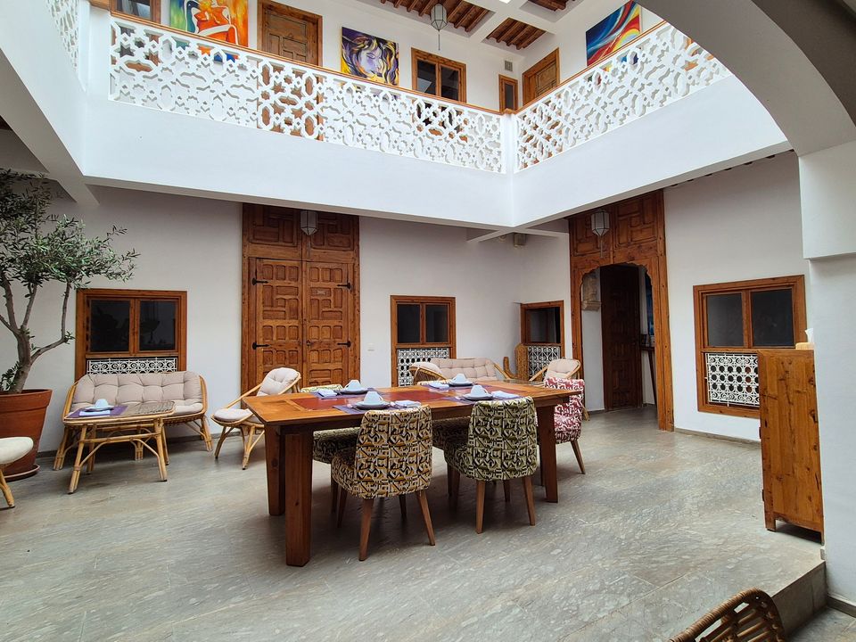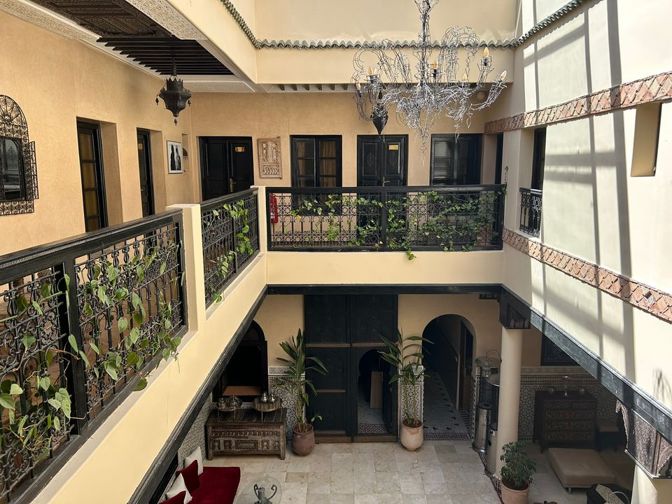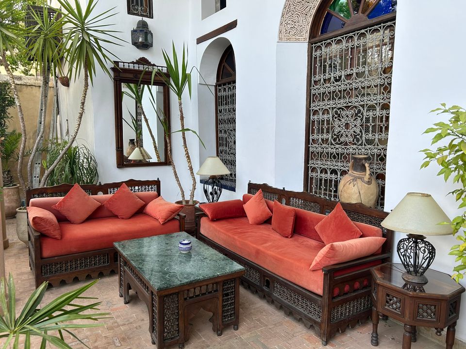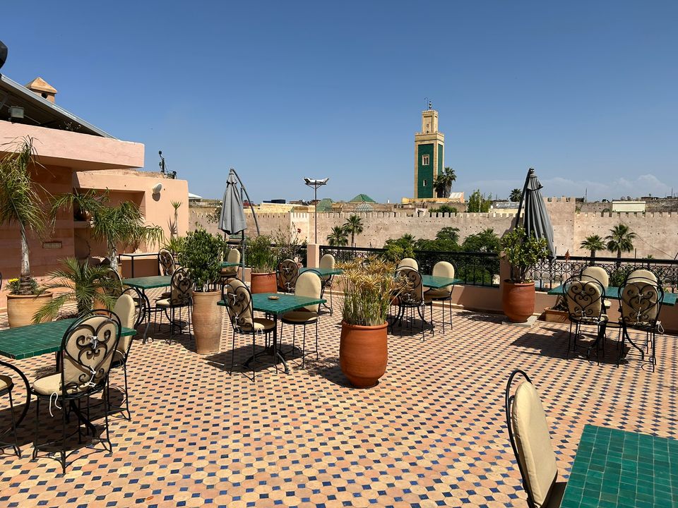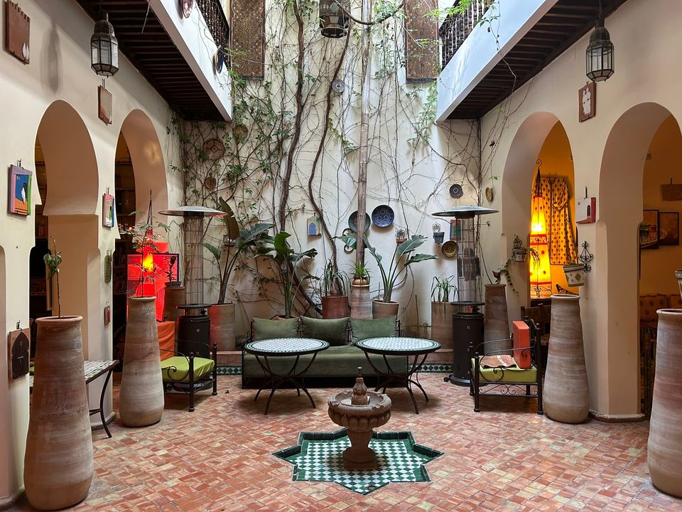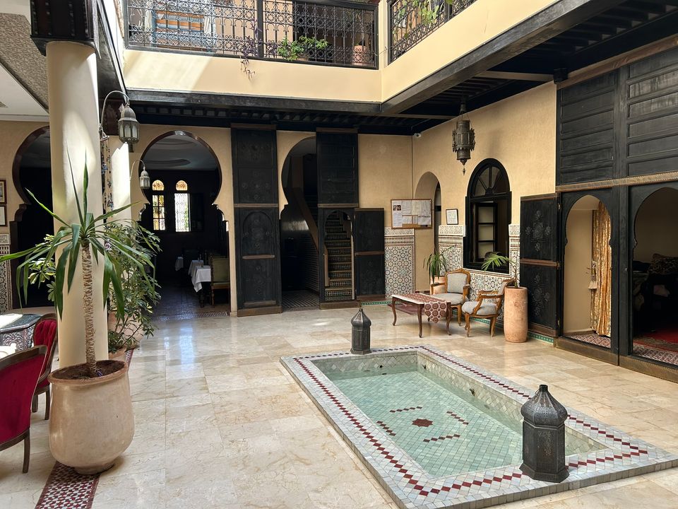 Wat een fijne binnenkomst! Dit kleinschalige en goed verzorgde hotel in riad-stijl ademt de charme van traditioneel Marokko. De mozaïeken, authentieke details en klassiek ingerichte kamers zorgen voor de warme en karaktervolle sfeer. De ontvangsthal met fontein in het midden, is mooi gedecoreerd met traditionele mozaïeken. Via de openslaande glas-in-lood deuren bereik je de fijne binnentuin. Hier vind je diverse zitjes en in de hoek van de tuin een klein zwembad met enkele ligbedden. De kamers bevinden zich verspreid over de begane grond en de 1e verdieping. Op de overloop van de 1e verdieping zijn een aantal tafels geplaatst. Een prettige plek om te ontbijten of dineren bij minder mooi weer. Vanaf het dakterras op de 2e verdieping heb je een prachtig uitzicht over de oude media. Het hotel beschikt niet over een lift.