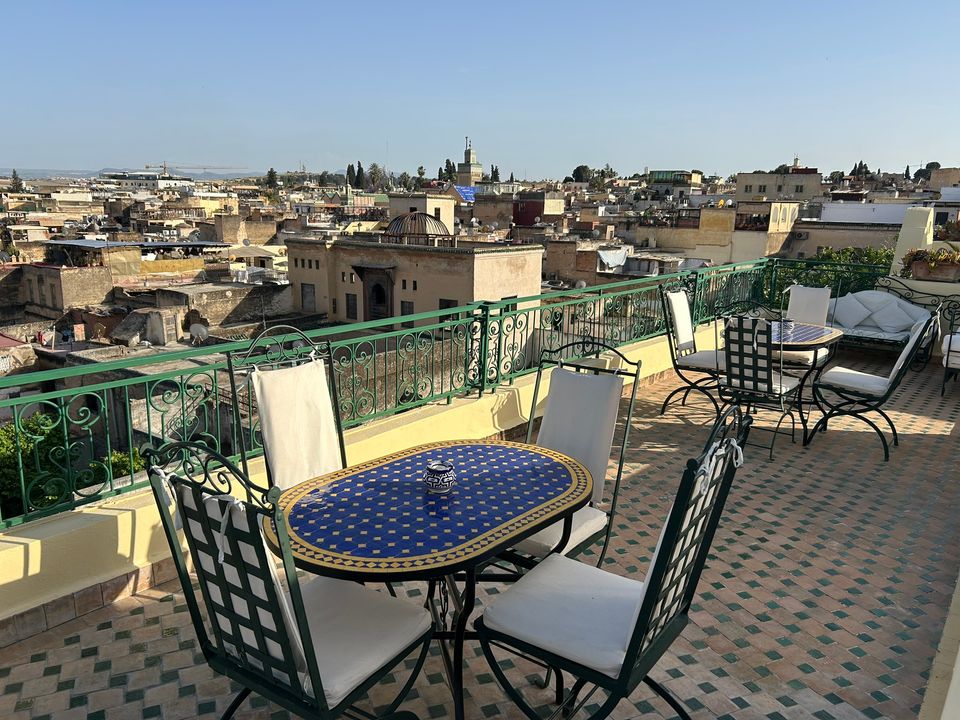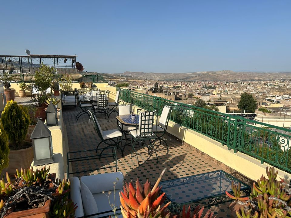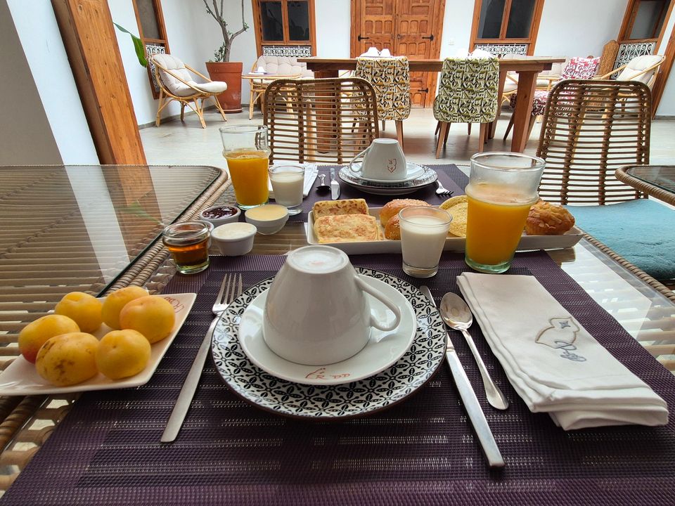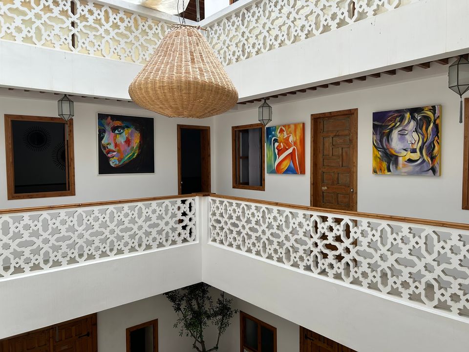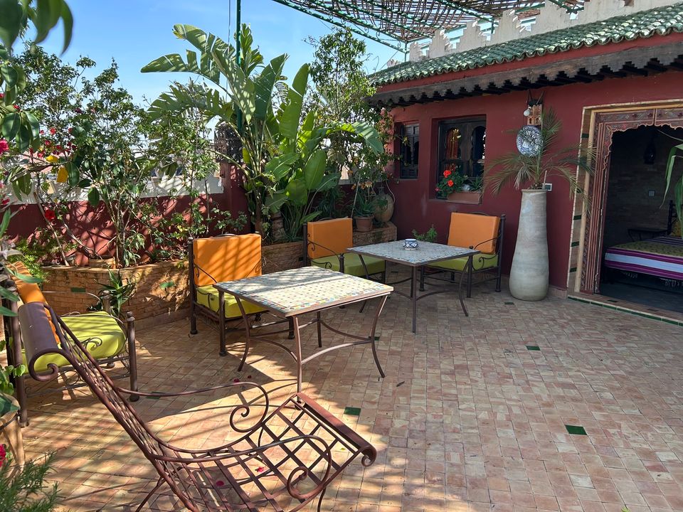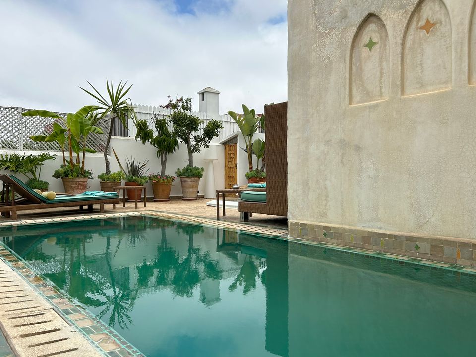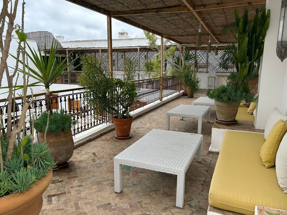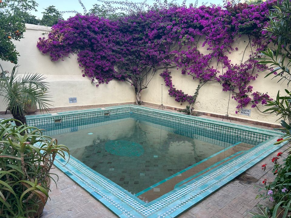 Wat een fijne binnenkomst! Dit kleinschalige en goed verzorgde hotel in riad-stijl ademt de charme van traditioneel Marokko. De mozaïeken, authentieke details en klassiek ingerichte kamers zorgen voor de warme en karaktervolle sfeer. De ontvangsthal met fontein in het midden, is mooi gedecoreerd met traditionele mozaïeken. Via de openslaande glas-in-lood deuren bereik je de fijne binnentuin. Hier vind je diverse zitjes en in de hoek van de tuin een klein zwembad met enkele ligbedden. De kamers bevinden zich verspreid over de begane grond en de 1e verdieping. Op de overloop van de 1e verdieping zijn een aantal tafels geplaatst. Een prettige plek om te ontbijten of dineren bij minder mooi weer. Vanaf het dakterras op de 2e verdieping heb je een prachtig uitzicht over de oude media. Het hotel beschikt niet over een lift.